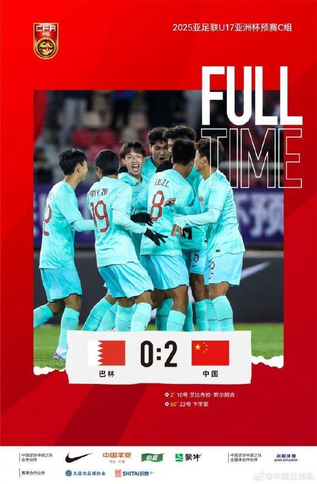 北京时候10月19日,2025亚足联U17亚洲杯预选赛C组比赛中,中国U-16男足国度队以2-0顺服巴林U-16男足国度队,获得开门红!